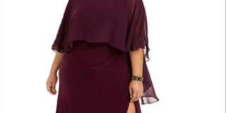 Adrianna Papell Women's Embellished Chiffon Capelet Dress Wine Size 22W