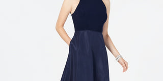 Adrianna Papell Women's Halter Mikado Gown Blue Size 14