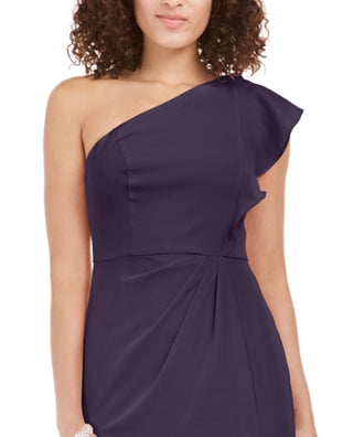 Adrianna Papell Women's Ruffled One-Shoulder Gown Purple Size 18