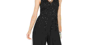 Adrianna Papell Women's Beaded Skirt Overlay Jumpsuit Black Size 4