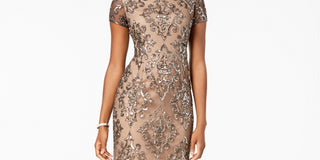 Adrianna Papell Women's Damask Sequined Mesh Dress Brown Size 6