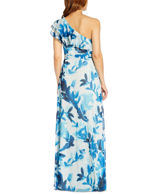 Adrianna Papell Women's One Shoulder Clip Dot Gown Blue Size 4
