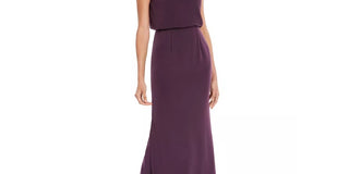 Adrianna Papell Women's Slitted Solid Sleeveless Cowl Neck Maxi Sheath Straight Leg Evening Dress Purple Size 4