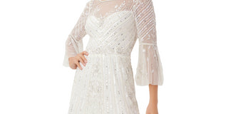 Adrianna Papell Women's Illusion Detail Flare Sleeve A Line Dress White Size 2