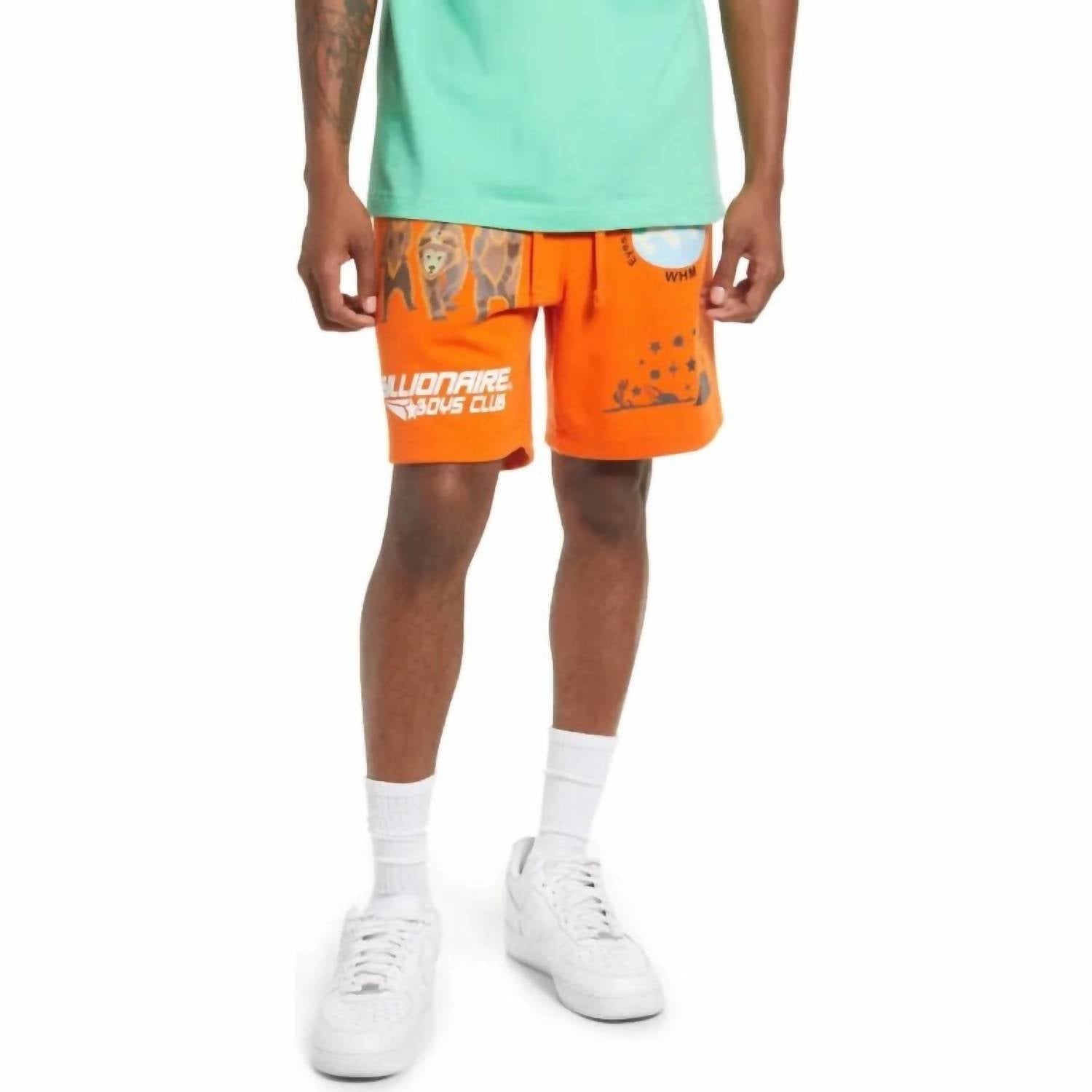 Discover the Peak Shorts by BILLIONAIRE BOYS CLUB, perfect for a lively vacation. Made from 100% cotton, these Red Orange shorts feature a graphic pattern, pockets, and a comfortable tie closure. With a soft cotton knit and imported design, they provide a 7.5" inseam, 24" leg opening, 14" front rise, and 17" back rise (size Medium) for the ideal fit. Embrace the streetwear trend with adjustable waist sizing and a true-to-size fit ranging from S to XXL.