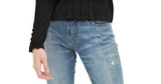 American Rag Junior's Lace Trimmed Button Front Top Black Size Medium