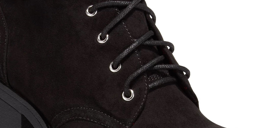 Round-toe lace-up ankle booties|2-3/4" heel, 1/2" platform|Fabric upper; manmade sole|Imported