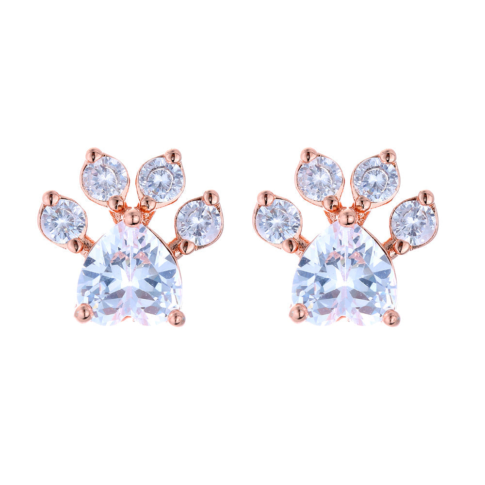 Show your pet love with this high-quality 14K Rose Gold Plating Over Sterling Silver And Sterling Silver Paw Earrings With Crystals. Designed to last a lifetime, the quality crystal is hypoallergenic. Perfect for dog lovers and pet lovers, these dog paw stud earrings are made from rose gold over the sterling silver base. The sparkling crystals are embedded in the design to bring out the true beauty of your pup. The earrings features small clear crystals which can help to increase the strength of concentration and focus.