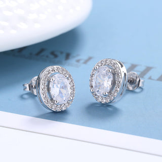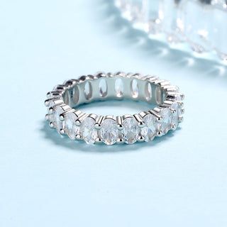 14 KT White Gold Plated Oval Cut Eternity Ring with Swarovski Crystals