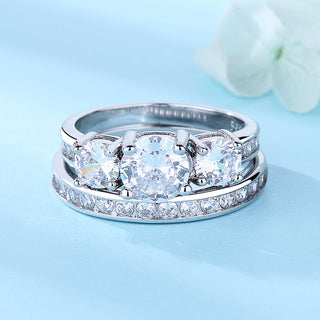 18K White Gold Milgrain Eternity Band Set with Swarovski