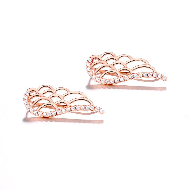 14K Gold Plated Angel Wing earring crawlers with Swarovski Crystals