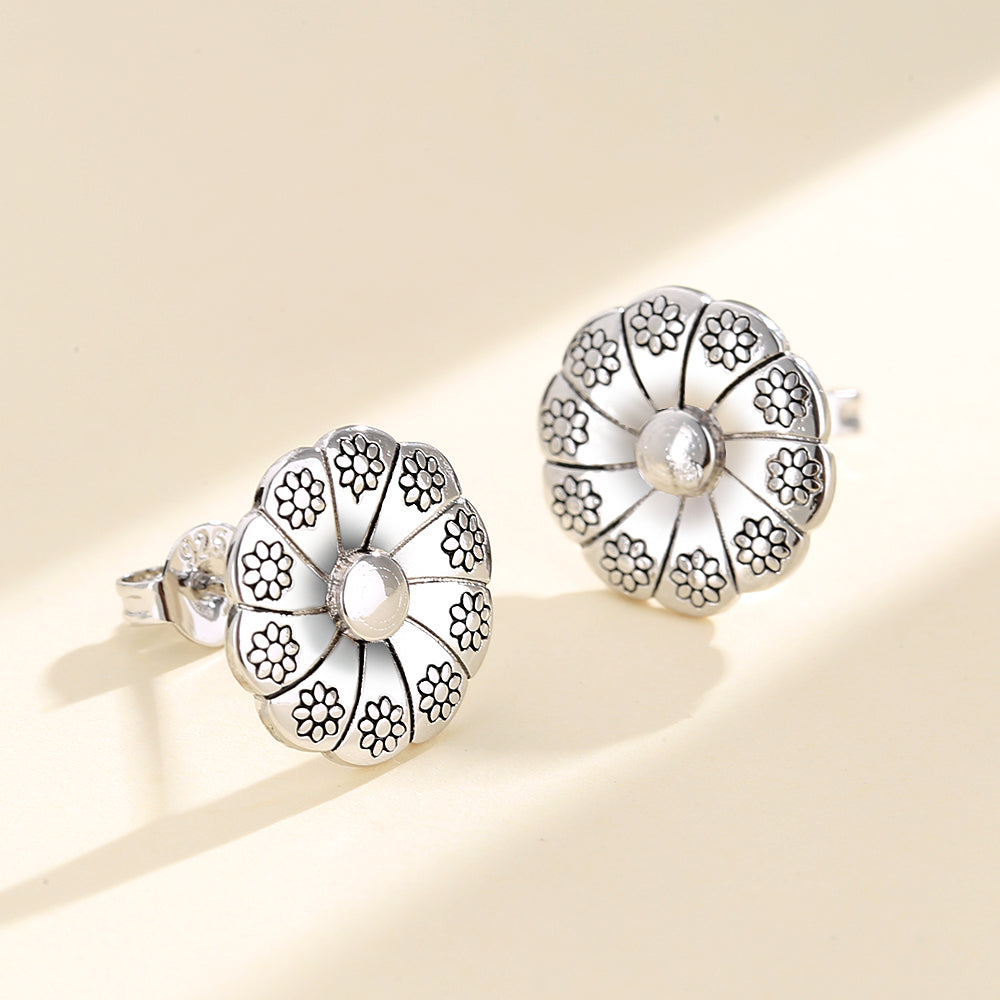 The attention to detail and craftsmanship is evident in every aspect of the design, from the precise and intricate floral pattern to the smooth and polished finish of the silver. These earrings are lightweight and comfortable to wear, making them suitable for all-day wear or special occasions.