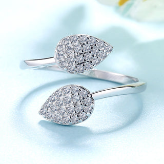 Sterling Silver Bypass Double Leaf Ring With Swarovski Crystals