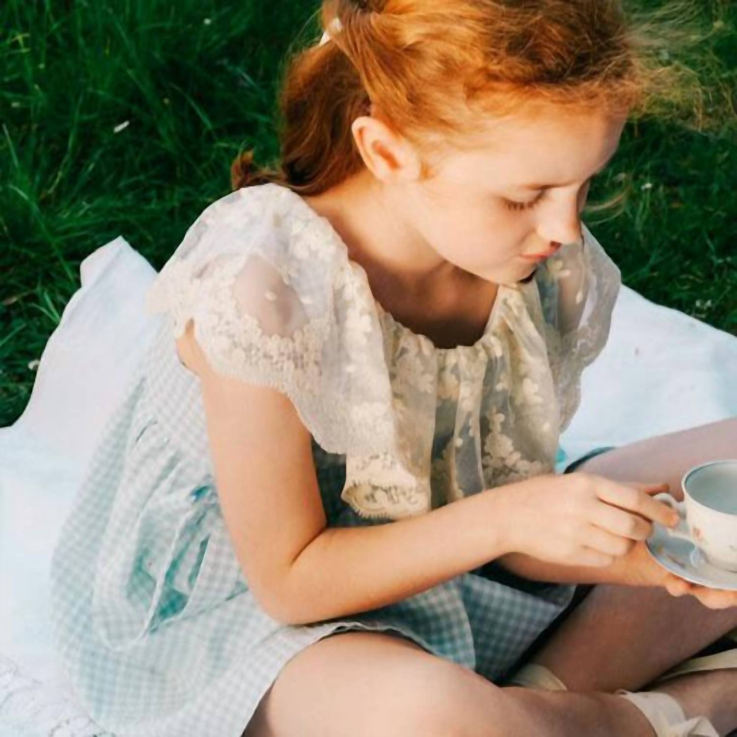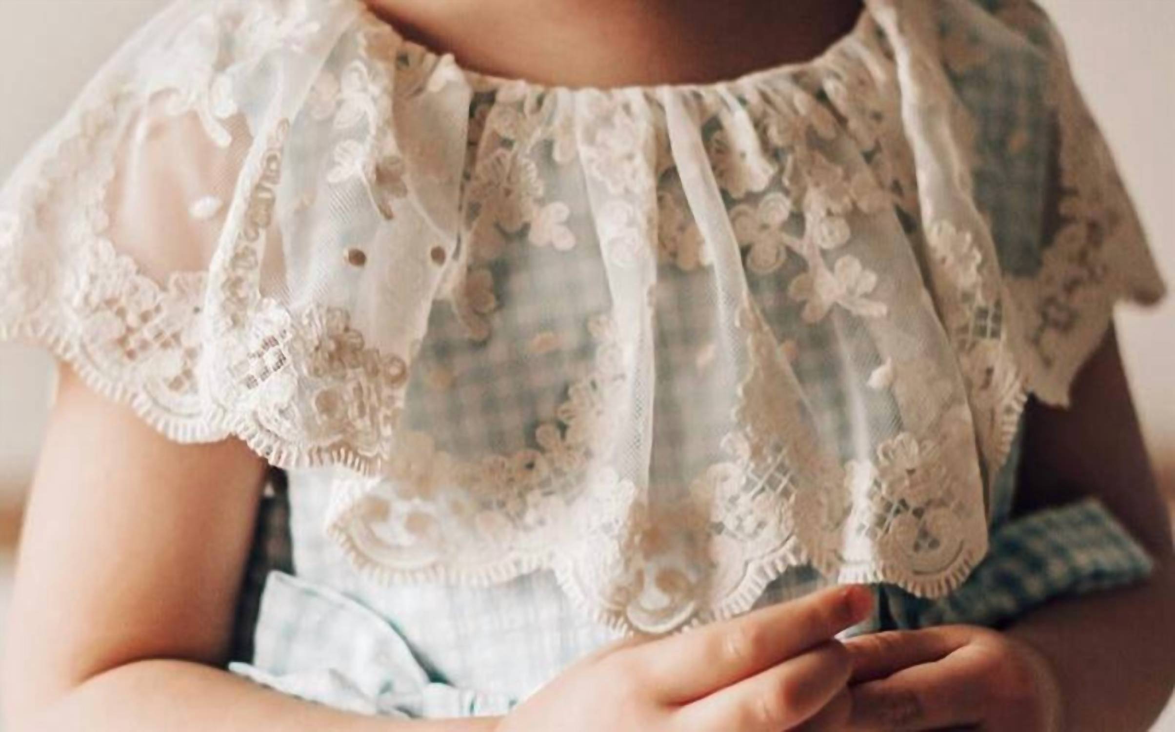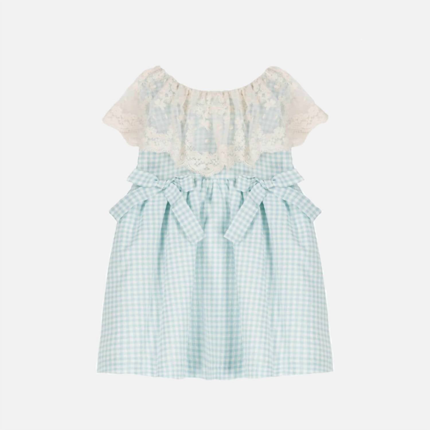 Experience the Mint With Lace Dress by Allegra Paris, a stunning blend of casual chic and bohemian elegance, perfect for summer vacations. This dress is crafted from 100% cotton in a charming blue gingham pattern, featuring a beautiful lace collar sourced from Calais. Designed with meticulous craftsmanship in Paris and made in Spain, this piece embodies the essence of French fashion. While care instructions are not provided, the dress prioritizes sustainability with its Oeko Tex 100 certification.