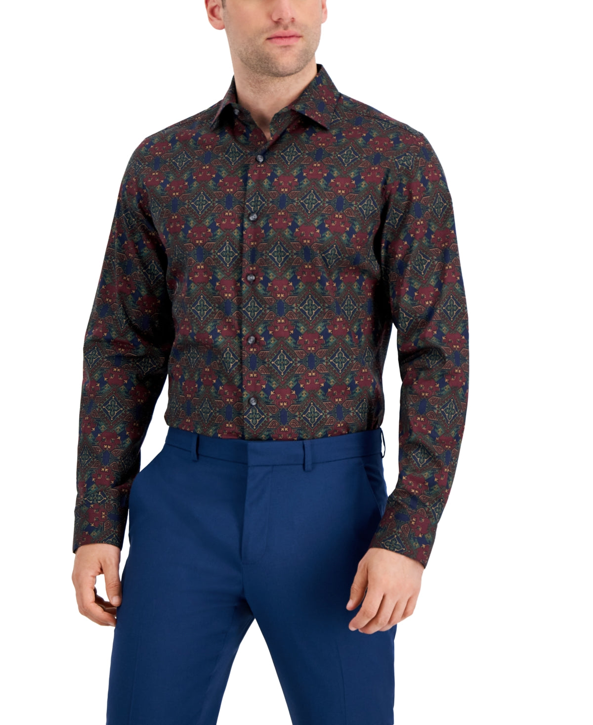 Give your dressed-up look an upgrade with the bold geometric pattern printed on this Slim Fit dress shirt from Bar III. | Stretch performance| Button cuffs| Imported| Geo-print pattern; designed for untucked wear | Spread collar|
