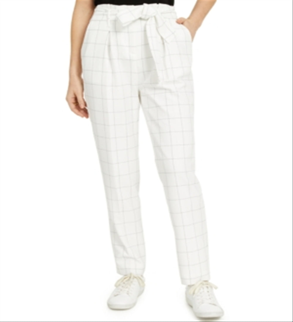 Bar Iii Belted Windowpane Slim Straight-Leg Pants