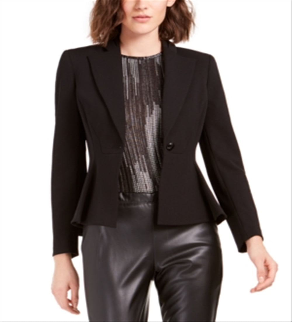 Bar III Women's Crepe Peplum Blazer Black Size 0