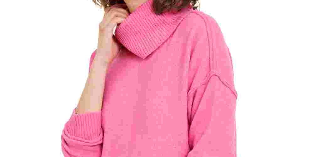 Relaxed fit; approx. length: 25" at front; 27-3/4" at back|Ribbed turtleneck|High-low hemline with ribbed edge|Drop-shoulder long sleeves with shoulder seam detail and ribbed cuffs
