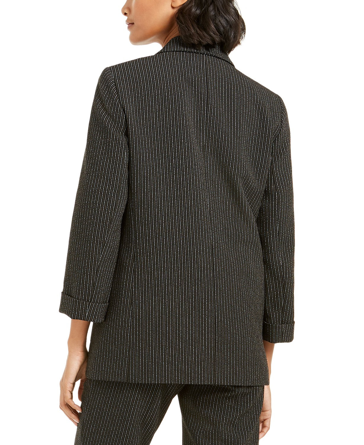 Approx. model height is 5'10" and she is wearing a size S | Approx. length: 28-1/2" | Notched collar; open front | Shoulder pads | Welted pockets | Rolled cuffs at long sleeves |Lined | Polyester/elastane; lining: polyester | Dry clean | Imported