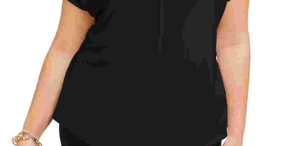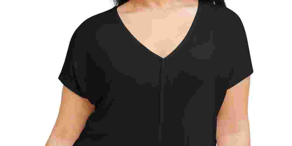 Bar III Women's Plus Suit Separate V-Neck T-Shirt Black Size 1X