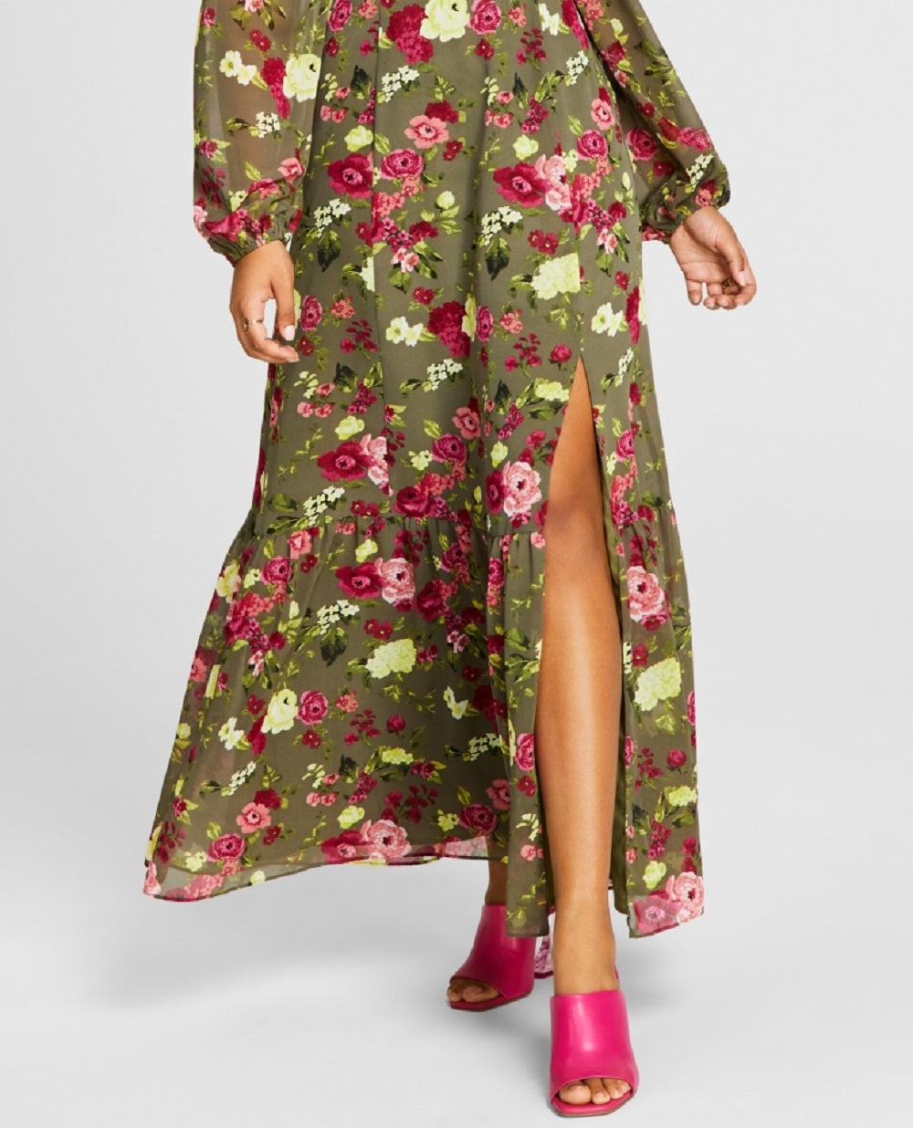 With all the drama and romance of your boho dreams| this maxi dress from Bar III flatters with bustier detail and a high slit