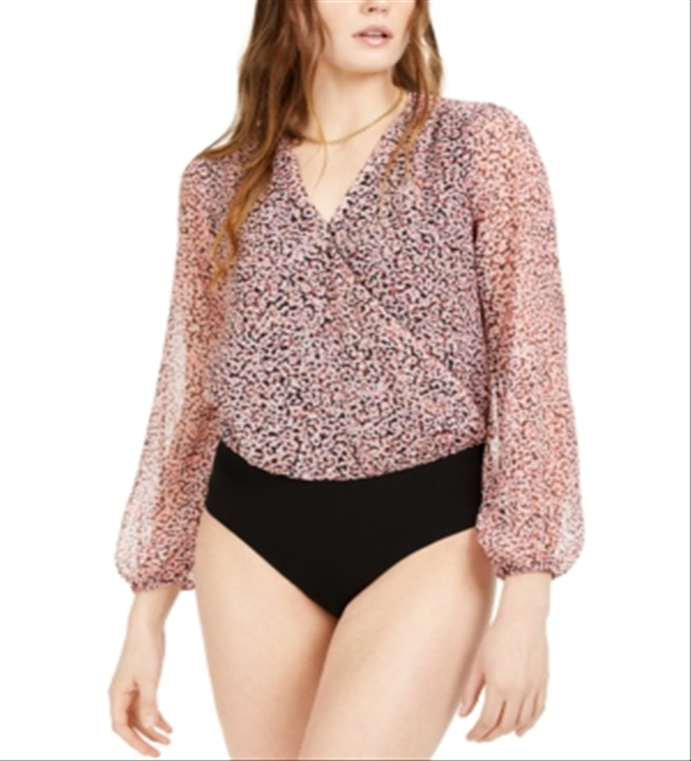 Surplice neckline| Tack closure at front| Abstract melody print; crinkle chiffon