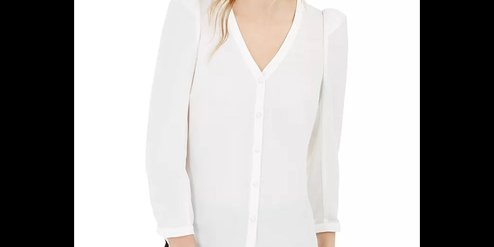 Bar III Women's Puff Sleeve Button Up Blouse White Size Small