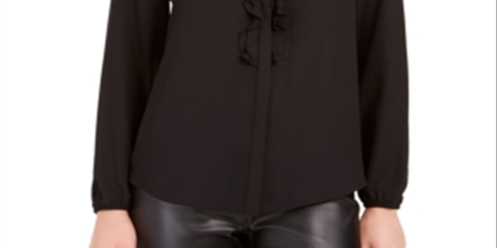 Bar III Women's Ruffle Front Button up Blouse Black Size X-Large