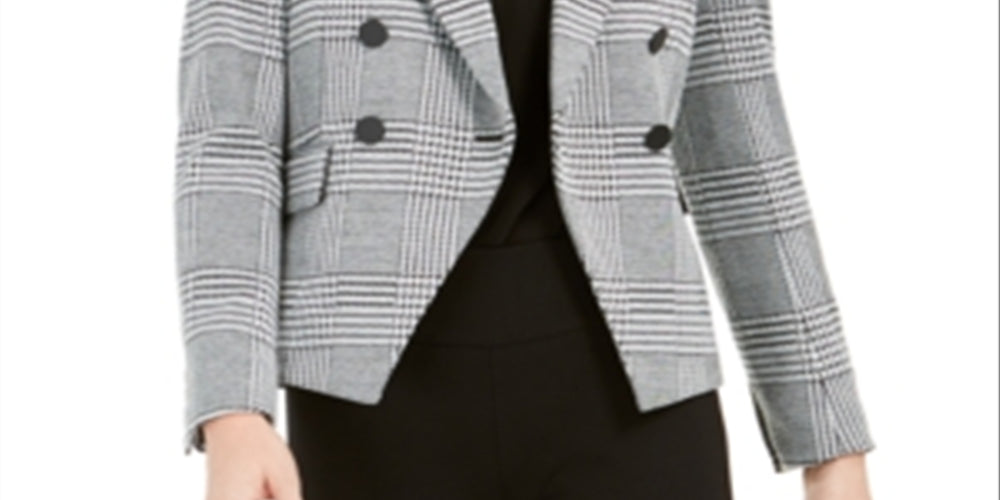 Bar III Women's Suit Separate Business Double Breasted Blazer Black / IvorySize 6