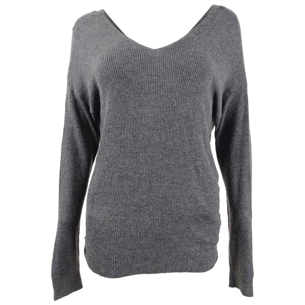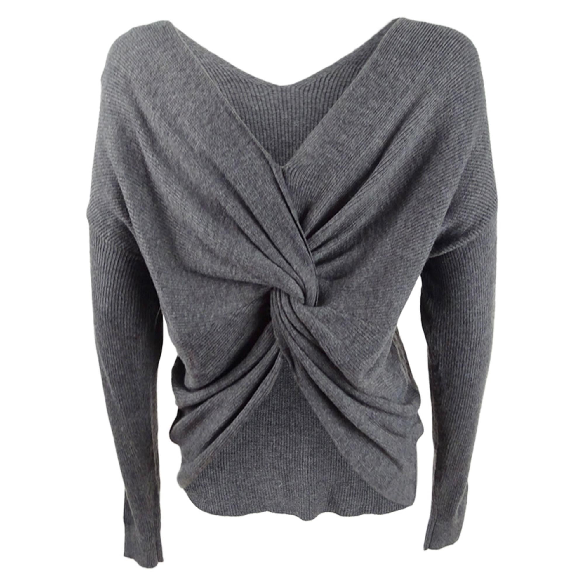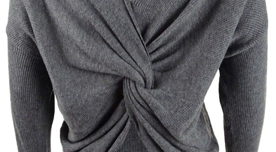 Relaxed fit; hits at thigh|Twist back detail; asymmetrical hem, can wear twist detail in front or back|Long sleeve|Acrylic/nylon/wool|Machine washable