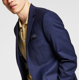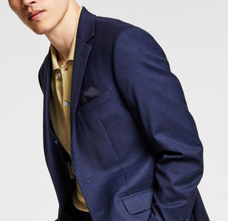 Bar III Men's Skinny Fit Plaid Suit Jacket Blue Size 44