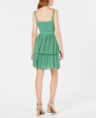 Bar III Women's Printed Ruffled Dress Green Size 8