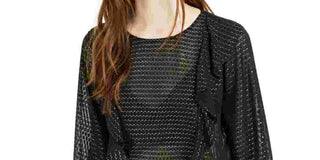 Bar III Women's Printed Long Sleeve Jewel Neck Top Black Size Large