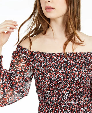 Bar III Women's Smocked Off-The-Shoulder Blouse Black Size Large
