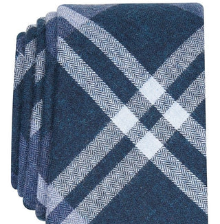 Bar III Men's Shilling Skinny Plaid Tie Blue Size Regular