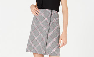 Bar III Women's Zipper-Detail Plaid Skirt Black Size 12