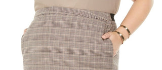 Bar III Women's Trendy Plus Size Plaid Pencil Skirt Brown Size 20