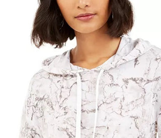 Bar III Women's Marble-Print Pullover Hoodie White Size Large