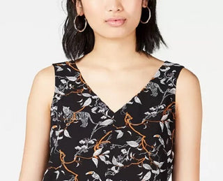 Bar III Women's Printed Sleeveless V-Neck Top Black Size Medium