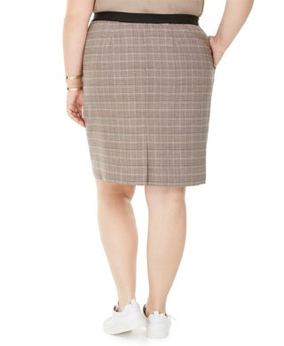 Bar III Women's Trendy Plus Size Plaid Pencil Skirt Brown Size 18W