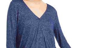Bar III Women's Cut Out Long Sleeve V Neck Top Navy Size Medium