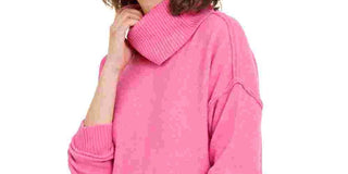 Bar III Women's Long Sleeve Turtle Neck T-Shirt Sweater Pink Size XX-Large