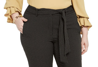 Bar III Women's Trendy Plus Size Striped Tie-Waist Pants Black Size 16 W