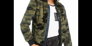Bar III Women's Printed Faux-Fur Bomber Jacket Green Size XXS