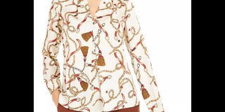 Bar III Women's Printed V-Neck Blouse Red Size X-Small