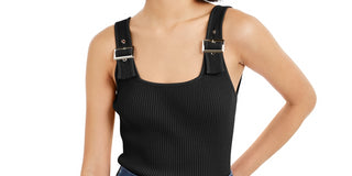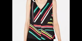 Bar III Women's Sleeveless V-Neck Blouse Black Size Large