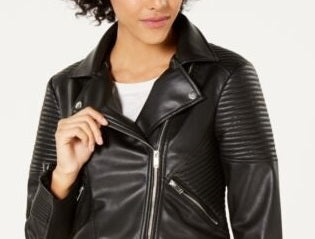 Bar III Women's Quilted Moto Jacket Black Size Medium