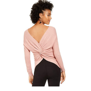 Bar III Women's Low Back Long Sleeve Scoop Neck Sweater Pink Size Large