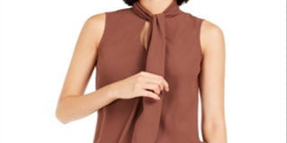 Bar III Women's Bow Neck Blouse Brown Size XX-Small
