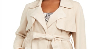 Bar III Women's Plus Faux Suede Belted Jacket White Size 16